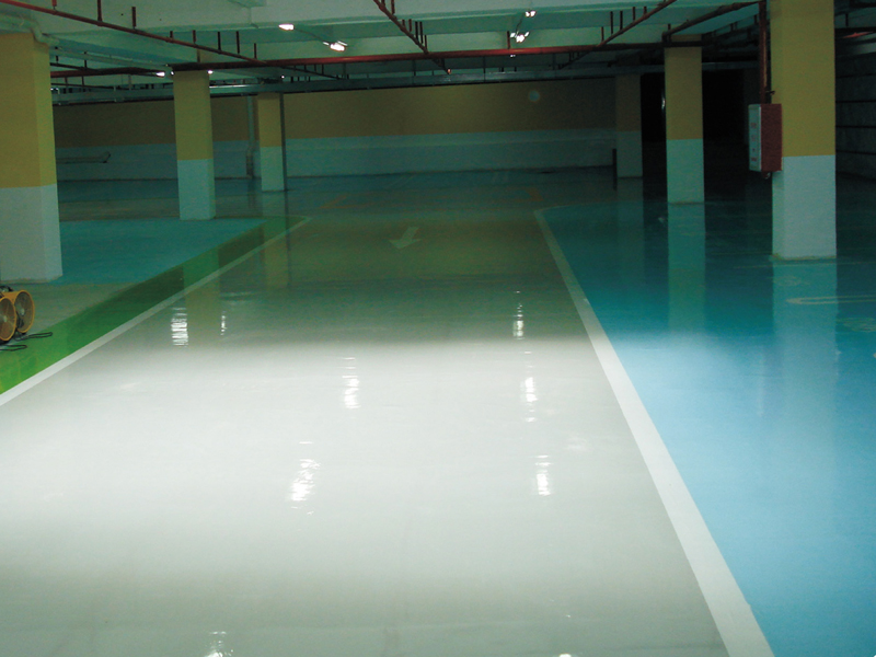 具有更優良的附著力及滲透性更易施工,砂漿中涂厚涂都不發軟,高光澤度高耐磨,亮度可達72度,叉車碾壓無變形,耐水泡30天不泛白;